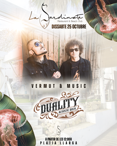 “DUALITY” es un dúo de músicos más que consolidados en la escena tarraconense. Te transportarán a estos sitios de Chicago y Los Ángeles con sus covers de clásicos del blues y del rock.